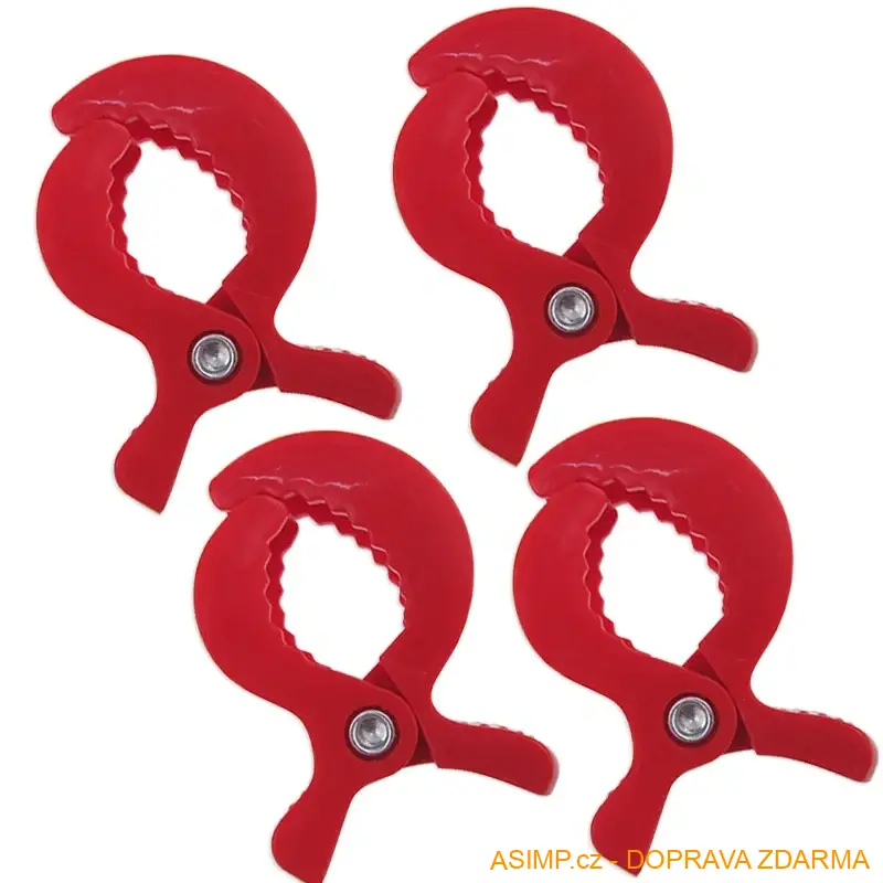 Klipy - skřipce na autosedačku, kočárek, moskytiéru ... (4ks - barva červená) / A-004107 / DOPRAVA ZDARMA