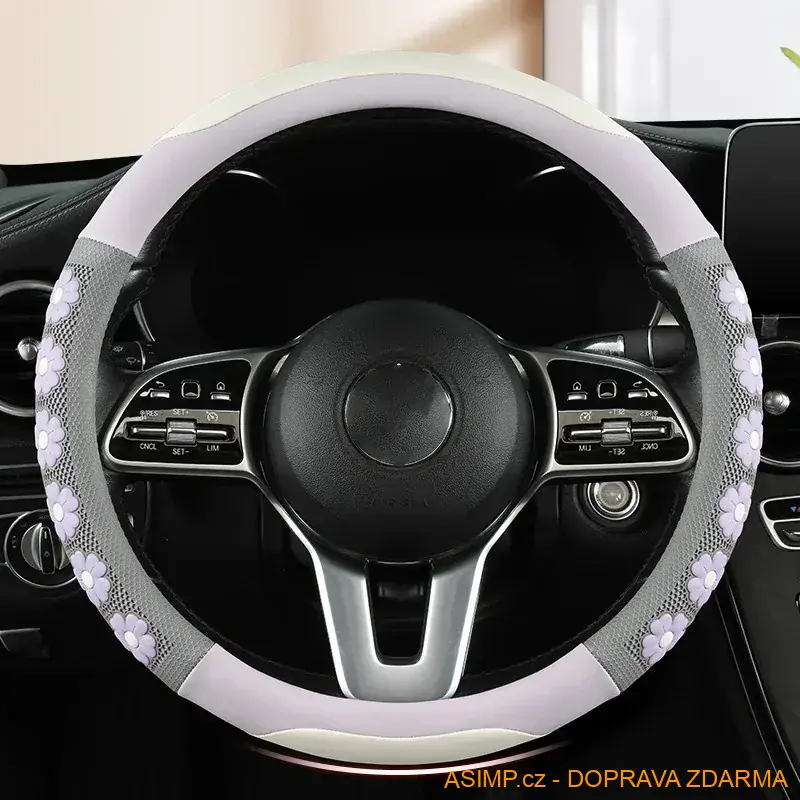Květovaný potah na volant.