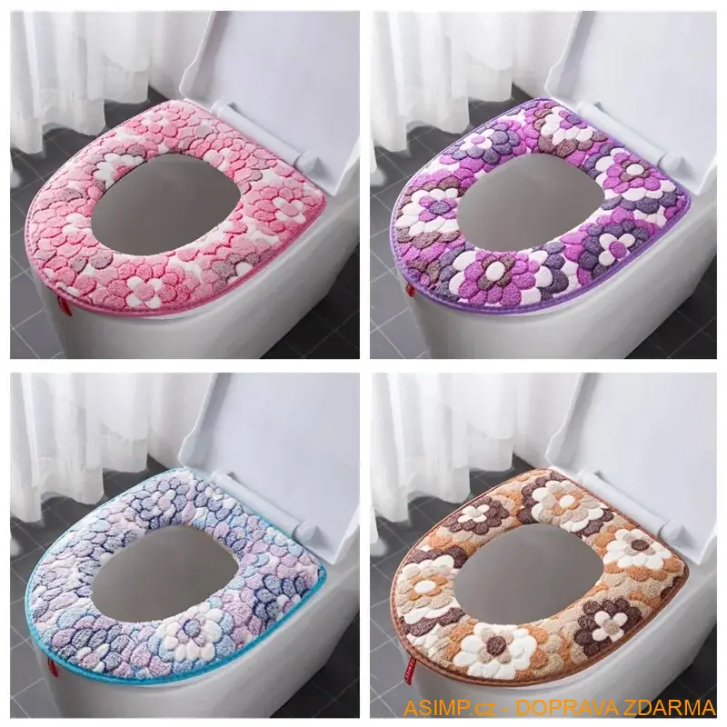 Květovaný teplý potah na záchodové prkénko.